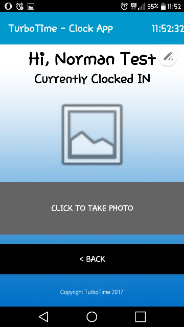 Once the TurboTime Cloud TimeClocks App has been installed you will see the screen